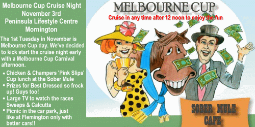 Sunday May 3rd - Cruise to Kinglake’s ‘Amongst the Ashes’ We’ll be leading a cruise to The Phoenix Rod & Custom Club’s first ever event, ‘Amongst the Ashes’ at Kinglake. We’ll be departing the Sober Mule Café at Lifestyle Centre in Mornington at 9am. A breakfast deal is available at the café for cruisers. Route will be via Eastlink to Ringwood [estimate cruisin’ thru around 9:45am], then along the Maroondah Hwy to Lilydale [est around 10:00am], then up the Yarra Glen-Yea Rd turning off at Castella for Kinglake. All ‘chrome bumpers’ are invited to join in the cruise as we roll by. A good run will see us arrive around 10:30 am. There is no charge for this cruise, just come along and enjoy the day. Contact Alan on #0417389114.